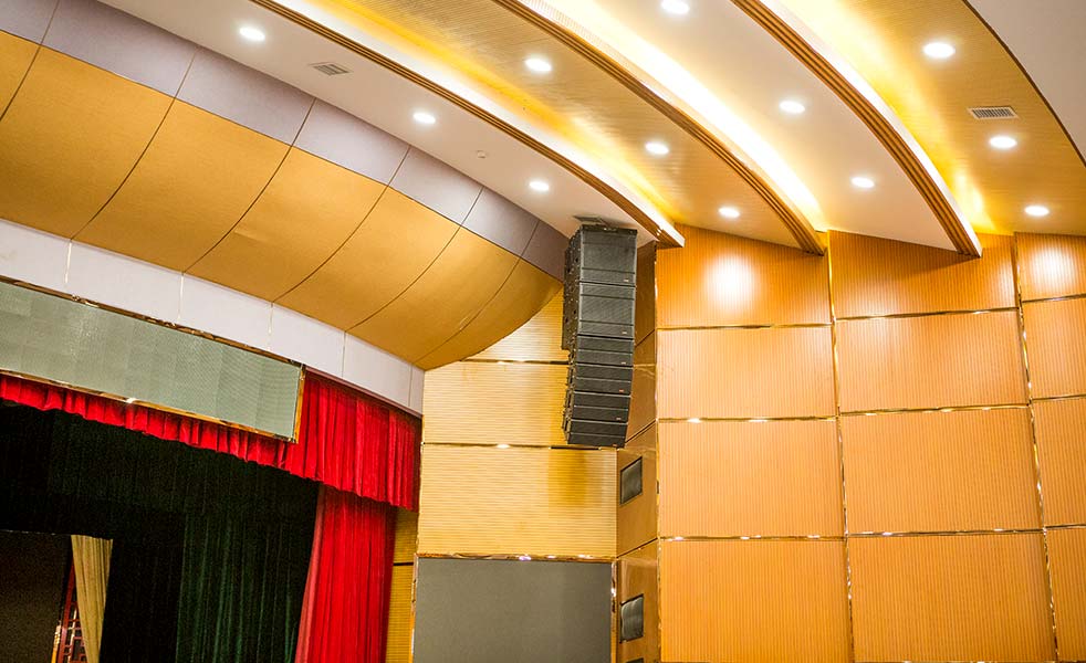 劇場內(nèi)共使用8只AT110-V2兩分頻兩驅(qū)動(dòng)單10寸線陣列音箱、4只ATL18B單18寸超低頻音箱,AT110-V2+ATL18B線陣列組合能夠有效解決劇場劇院的擴(kuò)聲要求,大聲壓級的產(chǎn)品特點(diǎn)能夠保證聲場的均勻分布,而使用了意大利B&C 3寸鈦膜高頻驅(qū)動(dòng)器,負(fù)載LAX DCH專利指向性修正號筒,保證了高音覆蓋范圍的均勻一致。