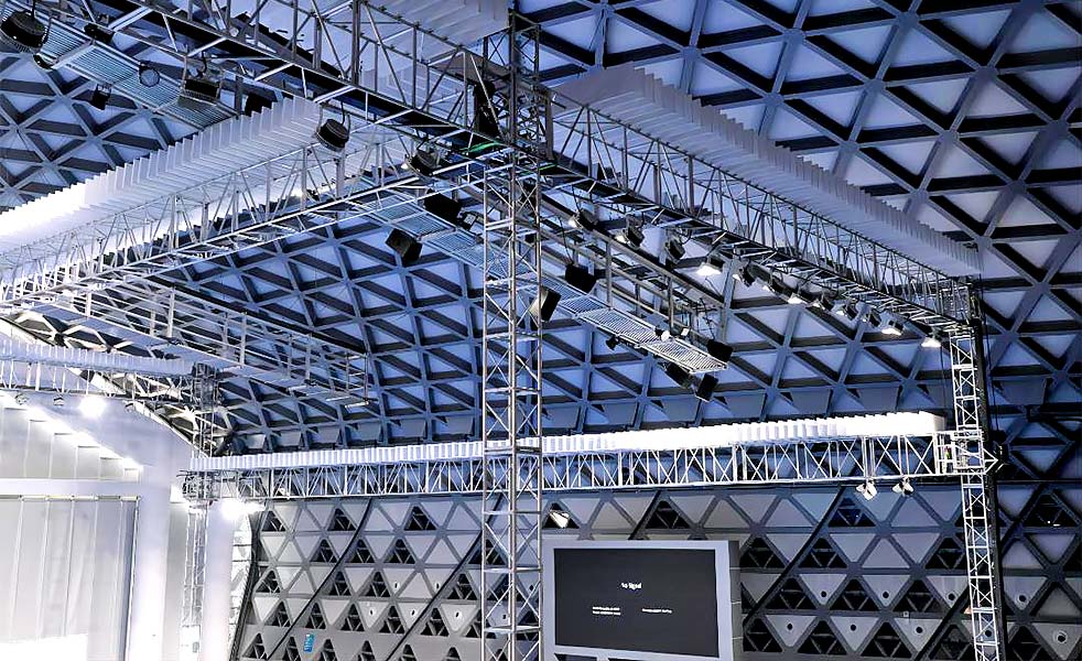 為了確保能夠更精確地還原音質的豐富動態,場館內擴聲系統的布局采用分散式布置方式。其核心在于采用了LAX PS12?3D束波可旋轉號角揚聲器。這是一類性能優秀的揚聲器產品,采用了束波技術,能夠在聲場內實現精確聚焦,有效提升聲壓級,降低失真,同時它也能夠滿足各種場景的擴聲需求。