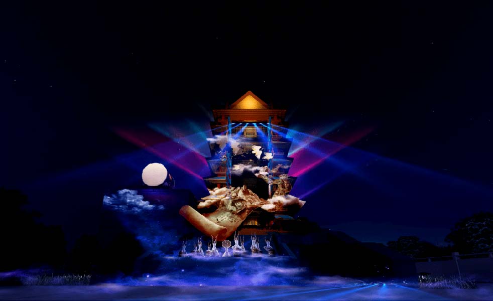 作為蘭州黃河樓景區最具代表性的演出產品,《大有蘭州》光影秀承載著黃河文化的內涵和精神力量,立足蘭州歷史文化,圍繞“源之大河”“金之大城”“民之大韻”“合之大州”四個篇章,以黃河樓為承載,以 3D MAPPING 投影及燈光秀為核心,融合夜游互動、微戲劇演藝、樓體光影秀,形成文化展示+ 視覺欣賞 + 體驗參與功能三位一體的光影夜游體驗,致力于打造中國西部最具標志性的城市休閑娛樂夜游項目。