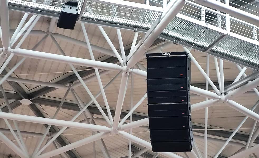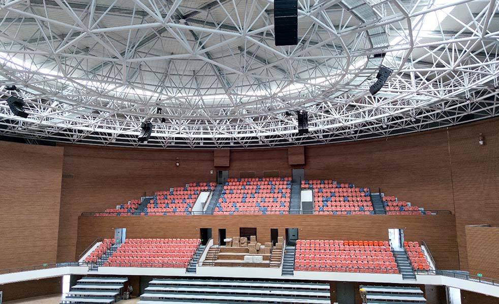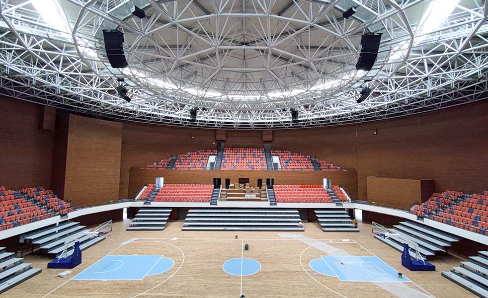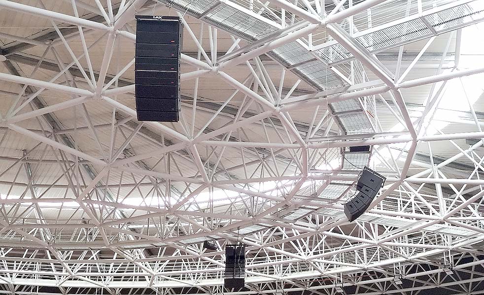 結合該體育館擴聲場所的實際擴聲需求和功能,在觀眾席應用了LAX AT208兩分頻雙8″陣列音箱作為主擴聲系統,而AT215B超低頻音箱為整場提供良好的低頻沖擊力。在觀眾席則使用了6只TH612多功能工程系列音箱,從而讓運動員能夠清晰接收各項指令。