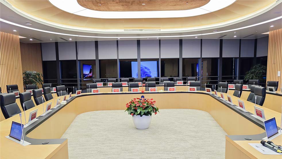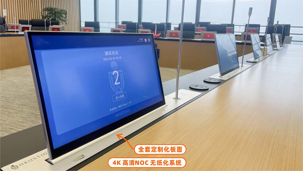 為使現代化、智能化、一體化系統設備應用到學校會議系統,滿足日常會議討論、發言、接待等需求,LAX通過專業的定制化設計,為香港科技大學(廣州)理事會會議廳打造一套智慧接待會議室解決方案,讓與會人員體驗到智能、便捷、功能合理的多媒體視聽會議集成系統。