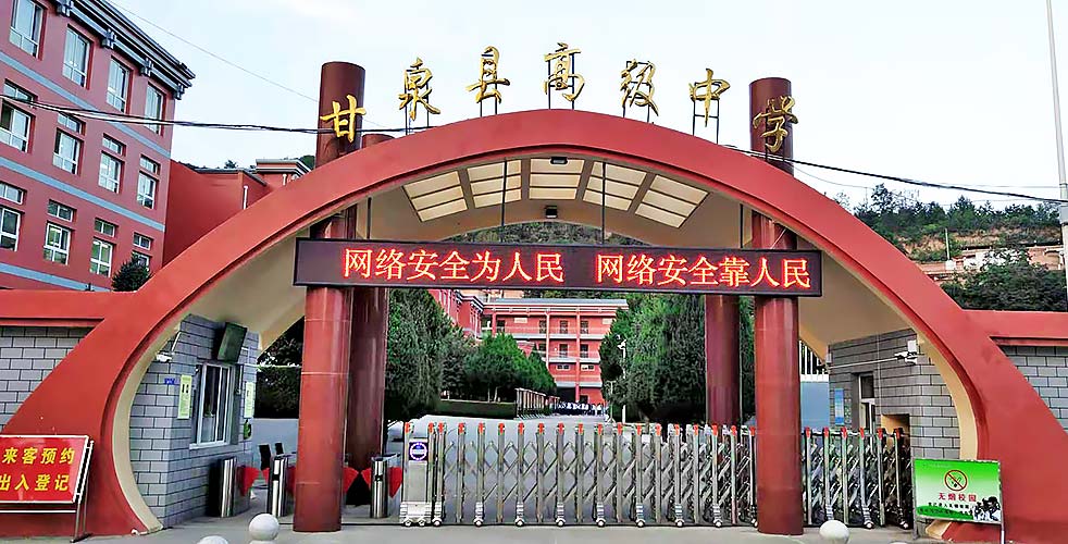 甘泉縣高級中學于2003年8月建成使用,學校占地86.5畝,總建筑面積32800平方米,總投資4300多萬元,共有教學樓、綜合實驗樓、餐廳、學生公寓樓和教師住宅樓五項主體建筑。