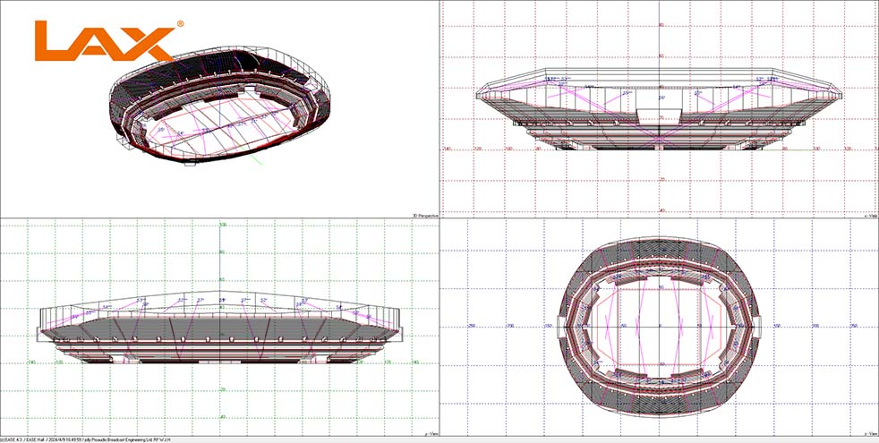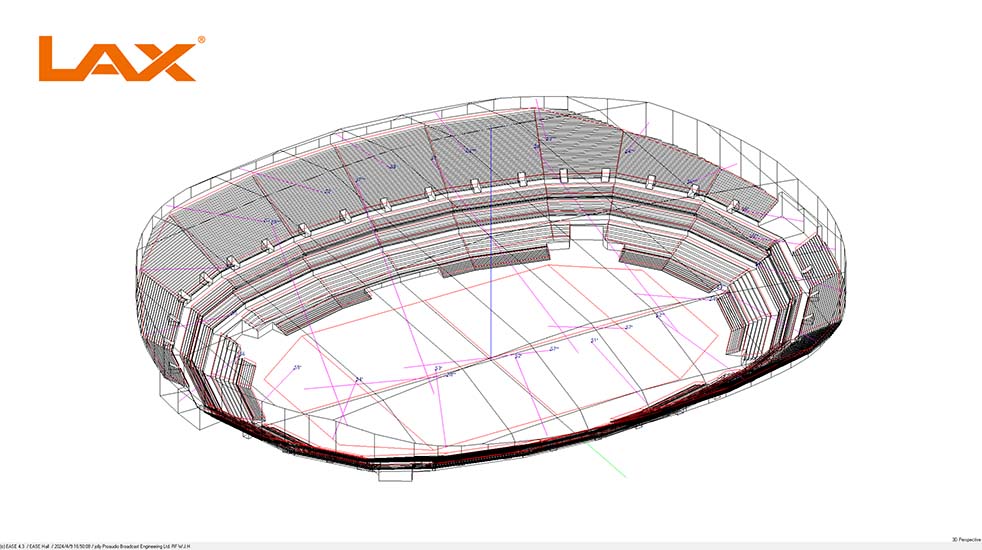 根據場館方對擴聲系統的基本要求、音響設備的選型與配置、擴聲系統的設計與施工、擴聲系統的維護與管理等方面需求,LAX技術團隊通過現場勘測并結合體育場擴聲系統EASE模擬分析,為贛州市全民健身中心量身定制一套體育場館擴聲系統,助力場館達到體育場館擴聲系統聲學特性指標達到一級國家標準,并保證了系統的先進性、合理性、靈活性、可靠性、經濟性和應急性。