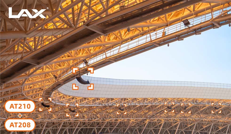 LAX總工程師趙春寧在恩賈梅納體育場實地勘測,調整揚聲器的中高頻指向性,通過波長陣列揚聲器在體育場館的應用,確保聲音在場館能夠更加清晰穩定和均勻覆蓋全場。