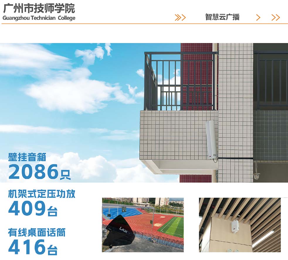 為滿足新校區各個場合的智慧云廣播系統需求,提高日常教學質量和溝通效率,銳豐科技LAX助力廣州市技師學院科教城新校區打造高品質、高性價比的智慧云廣播系統。