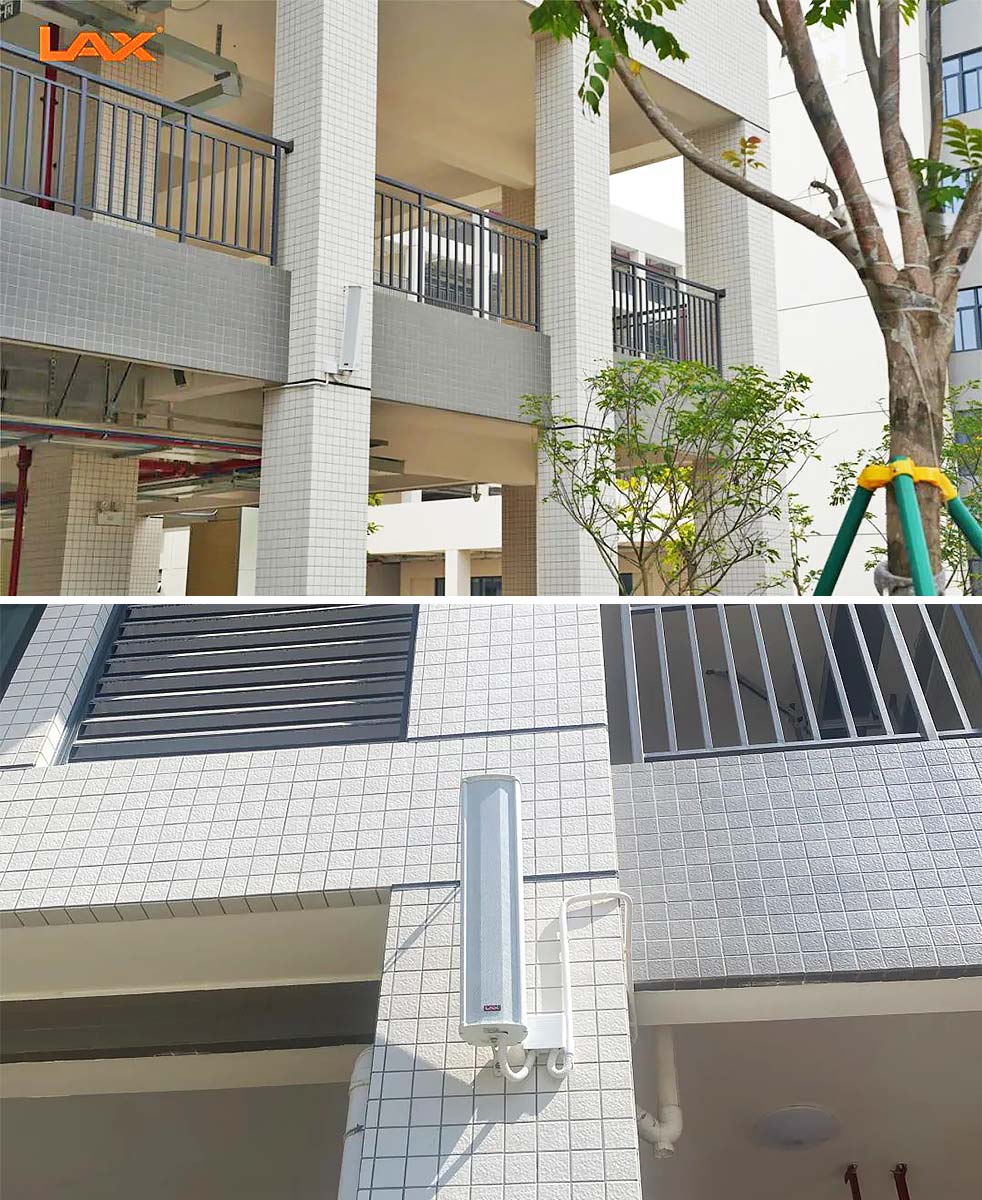 教學區14棟樓每棟樓外公共區域采用每棟獨立分區,每棟樓配置10只40W戶外壁掛音柱。