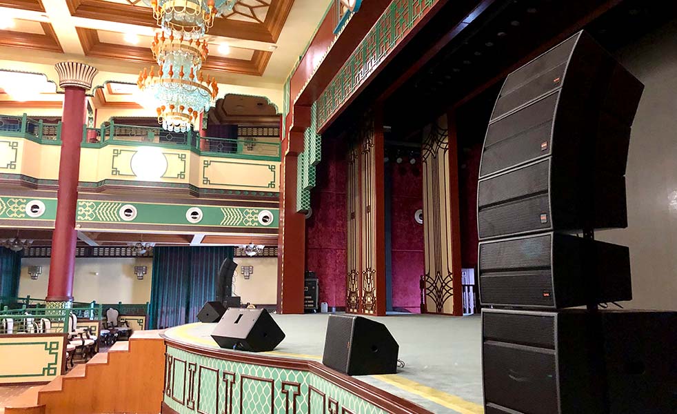 劇院內(nèi)擴(kuò)聲產(chǎn)品均使用LAX產(chǎn)品,其中主擴(kuò)聲使用AT108P、ATL15P 、返聽產(chǎn)品使用SA12,輔助音箱AS12。