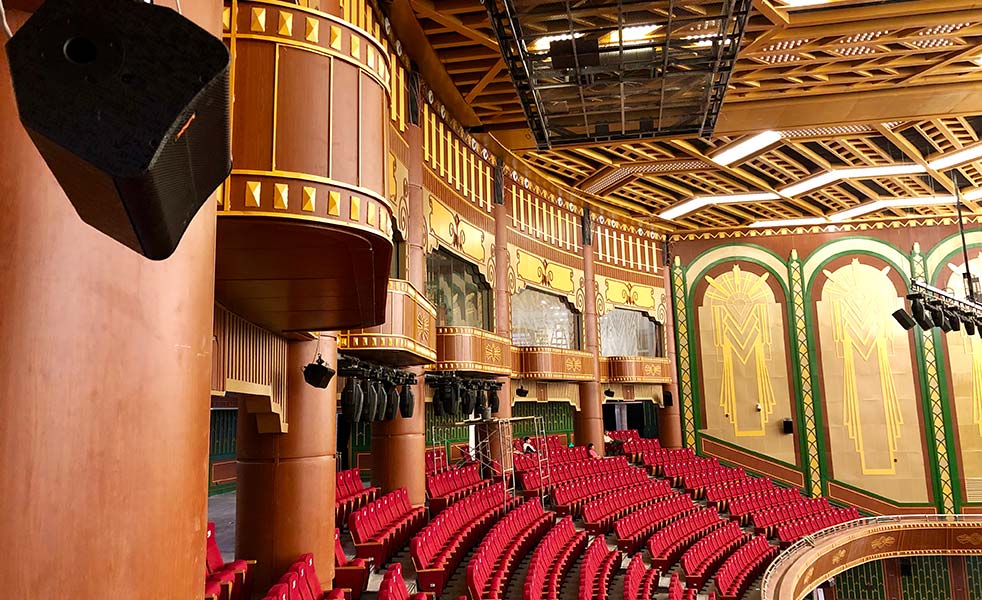 百老匯歌舞劇場(chǎng)使用主擴(kuò)聲AT3212搭配超低S218B 使用;側(cè)補(bǔ)聲為TH915 ;側(cè)環(huán)繞為SA12;而頂環(huán)繞方面則使用U8 ; 功放處理器方面,使用 MT1300 、 T2400 和 A7 功放,搭配DSP24 處理器使用。