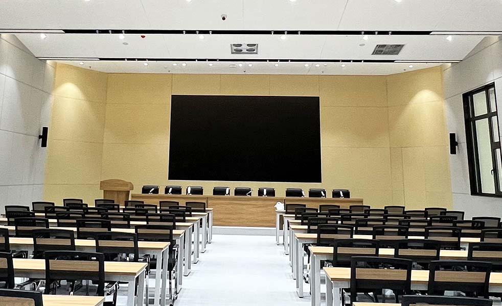 會議室音響選用LAX PTL系列音柱,10只均勻分布兩側吊掛安裝,使得整個會議室聲音清晰度、均勻度效果達到國家要求的標準。數字會議系統同樣選用了ETE的主機和話筒,并配備無線手持話筒,音頻處理系統、信號切換系統及控制系統等設備,滿足了數字化會議室的標準要求。