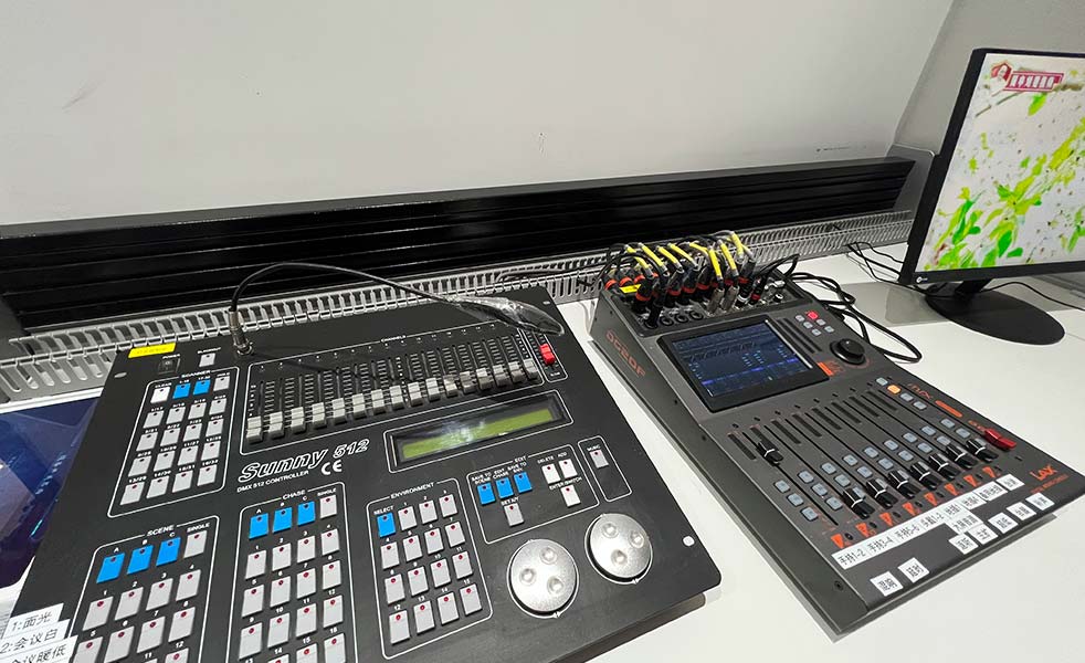 舞臺燈光系統由一道面光、兩道頂光、兩道測光及舞臺搖頭燈組成。