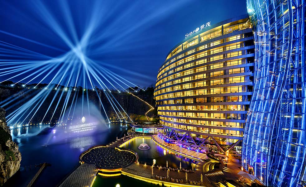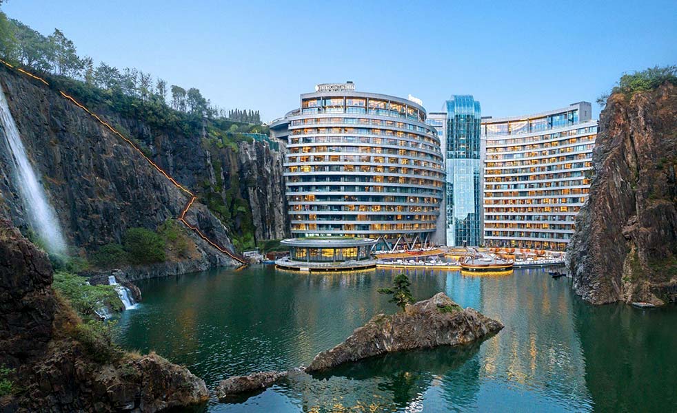 海佘山世茂洲際酒店是一座于采石坑內建成的自然生態酒店。一反向天空發展的建筑理念,下探地表88米,依附深坑崖壁而建。被美國國家地理譽為“世界建筑奇跡”。世茂以“城市治愈自然”為理念,將自然傷痕變為瑰寶。酒店坐落于上海之根-佘山,距離上海虹橋國際機場及上海虹橋火車站32公里,毗鄰佘山國家森林公園、辰山植物園等多處旅游勝地。