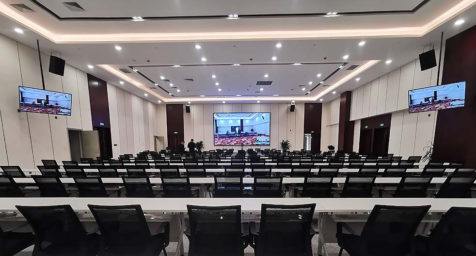 銳豐科技lax為報告廳設計了集擴聲系統、會議系統、視頻矩陣系統、中控系統的整體解決方案。