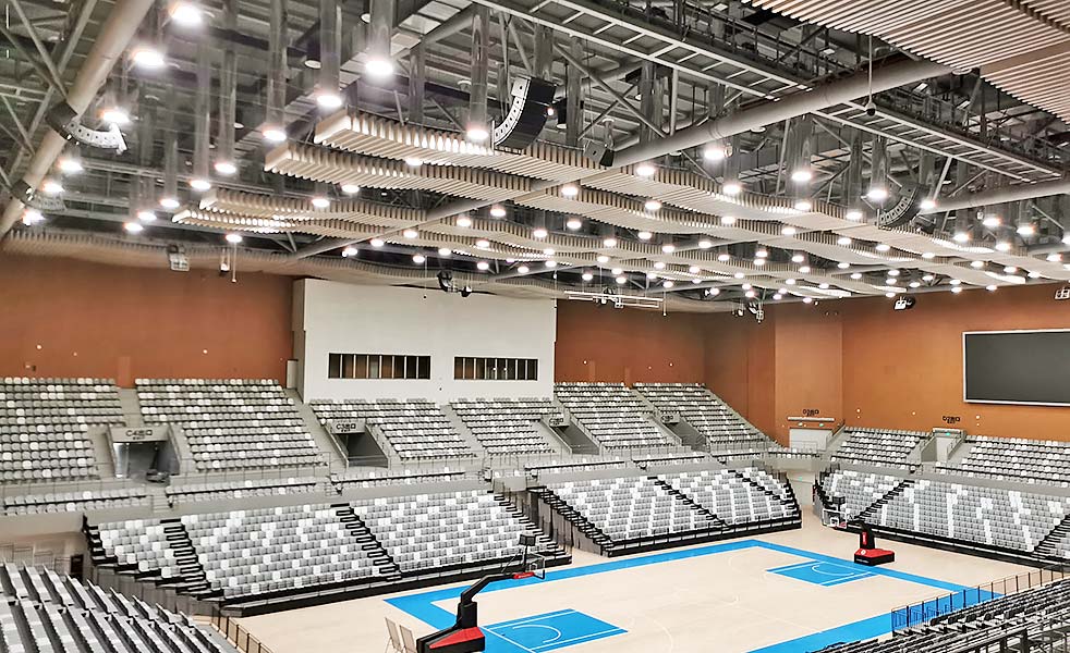 體育館擴聲系統按照國家規范及標準要求設計,同時體育場館的聲學設計也從建筑方案設計階段開始對體育場館的建筑聲學設計和噪聲控制設計協調同步進行充分體現現代化科技水平。滿足賽后體育場館科學管理和商業化經營的需要。揚聲器選用LAX AT線陣列和多功能工程系列,高性能高指標的音箱,具有能量集中,聲場涵蓋準確,可減少不必要的聲反射,為涵蓋區域提供極高的聲壓,從而保證全體觀眾歡呼時可聽到現場高清晰度的擴聲。