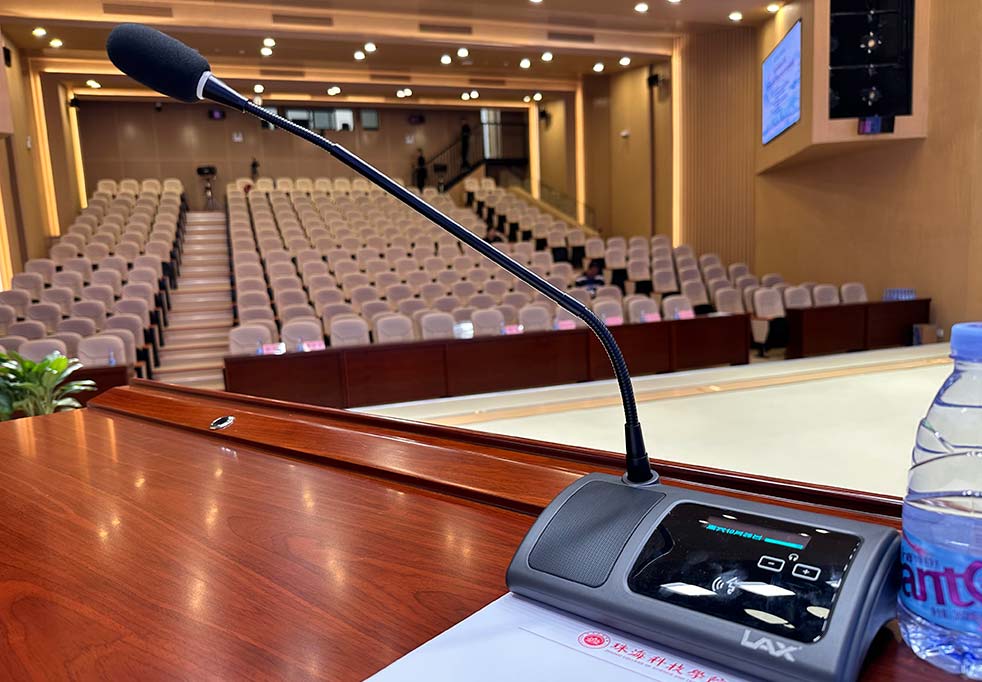 報告廳數字會議系統選用LAX DTY系列5G無線WiFi會議系統。內置高性能CPU,集同傳聲譯、討論、簽到、表決、攝像跟蹤為一體;從拾音到擴音全網絡化一體輸出;具備AFC嘯叫抑制,ANC噪聲消除技術,AEC回聲消除等dsp處理技術等。
