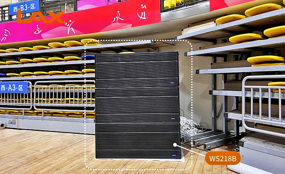 主席臺兩側落地擺放WS218B超低揚聲器,每側3只,覆蓋全部觀眾席區域。