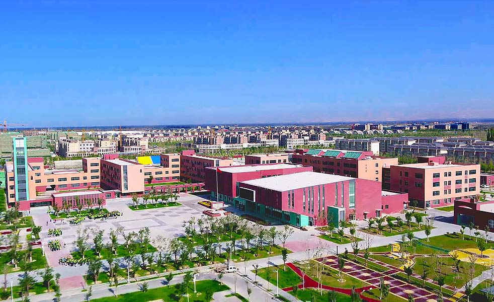 學校占地面積235畝,投入援疆資金達2.46億元,分教學區、運動區、生活區,有教學樓、綜合樓、藝術教室、學術報告廳、體育館、圖書館、公寓樓、塑膠運動場等,能容納3000名學生住宿。首屆高一開設16個班,其中包括兩個鎮江創新實驗班。首批90名教師中,鎮江市教育局從全市四星級高中擇優選拔了30名教學管理骨干和學科帶頭人,進入可克達拉鎮江中學開展“組團式”教育援疆,為期一年半。江蘇省丹陽高級中學黨委副書記、省人民教育家培養工程培養對象、鎮江市名校長朱萬喜任校長,這一具有鎮江特色的“名校長+管理層+骨干教師”的教育組團式援疆模式,無論在支援地江蘇還是受援地新疆都屬創新之舉。
