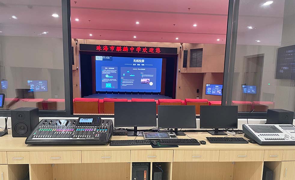 我司為麒麟中學報告廳、會議室、多媒體室、錄播室提供聲光視系統整體解決方案。包括專業擴聲系統、會議系統、錄播系統、燈光系統、大屏系統、中控系統、矩陣系統、舞臺機械等系統。