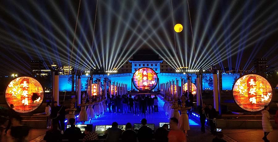 國慶期間,西安永安門城墻用一場大型城墻光影秀《長安頌》,和全國人民一起慶賀祖國69歲生日。