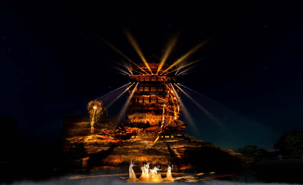 作為蘭州黃河樓景區最具代表性的演出產品,《大有蘭州》光影秀承載著黃河文化的內涵和精神力量,立足蘭州歷史文化,圍繞“源之大河”“金之大城”“民之大韻”“合之大州”四個篇章,以黃河樓為承載,以 3D MAPPING 投影及燈光秀為核心,融合夜游互動、微戲劇演藝、樓體光影秀,形成文化展示+ 視覺欣賞 + 體驗參與功能三位一體的光影夜游體驗,致力于打造中國西部最具標志性的城市休閑娛樂夜游項目。