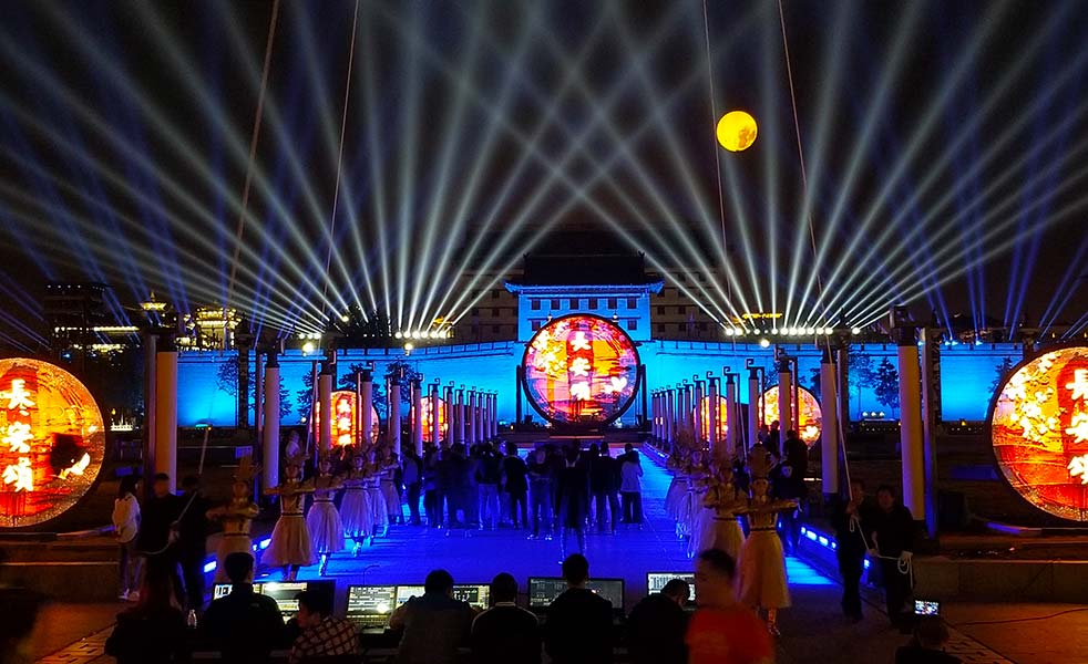 2018年國慶期間,西安永安門城墻用一場大型城墻光影秀《長安頌》,和全國人民一起慶賀祖國69歲生日。《長安頌》是國賓級禮儀文化演出《夢長安》的姊妹篇,依托西安的城市發展文化背景,分別展示:長安城初建、十三王朝的更迭與變遷、盛世大唐的文化魅力與舞姿唐詩的風采、絲綢之路的文明交匯、現代西安的城市新面貌以及西安不斷開拓進取,不忘初心的科技發展。此次演出由LAX音響相助,全方位展現西安十三朝古都、三千年文化積淀的人文歷史景觀,帶領觀眾穿過千年之門,認識西安、了解西安,體驗西安城市魅力。