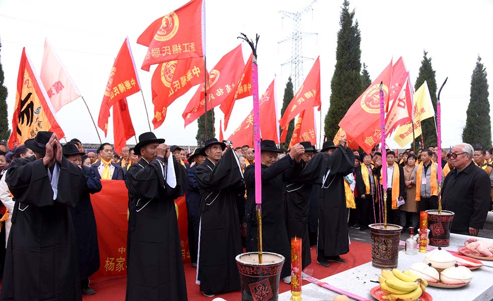 4月13日,2019天下楊氏根脈文化節(jié)楊氏祖塋祭大典活動(dòng)在華山鎮(zhèn)五方楊家祖塋舉行。來自全國各省市以及新加坡等國家六百多名楊姓代表在楊家祖塋通過脫帽三鞠躬等方式表達(dá)對(duì)先祖的緬懷。