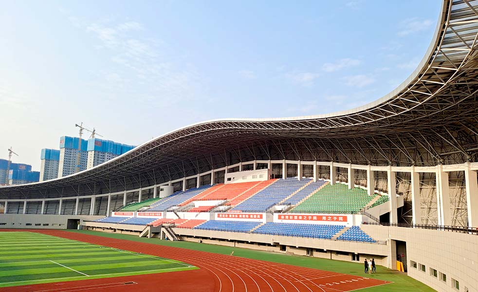 體育場為一橢圓形建筑,建筑面積約19139.39平方米,觀眾席12000座。體育館、訓練館為一橢圓形建筑,建筑面積約13760.44m2,體育館觀眾席3720座。