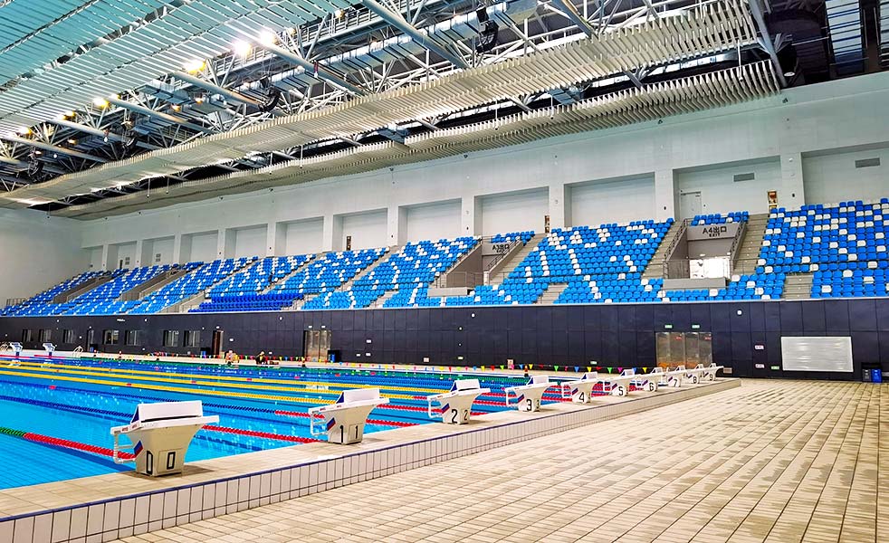 游泳館建筑面積約2.1萬平方米,是一座可容納2200人的中型甲級游泳館,將承辦省十七運會跳水和游泳比賽。