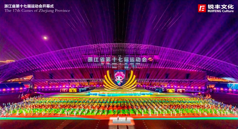 11月18日,浙江省第十七屆運動會開幕式在金華市體育中心體育場精彩上演。