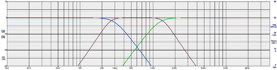兩分頻,是將整個音頻分成高低兩段,低段由口徑比較大的喇叭單元負責,高段由口徑小,或振膜比較輕小的喇叭單元負責,如下圖: