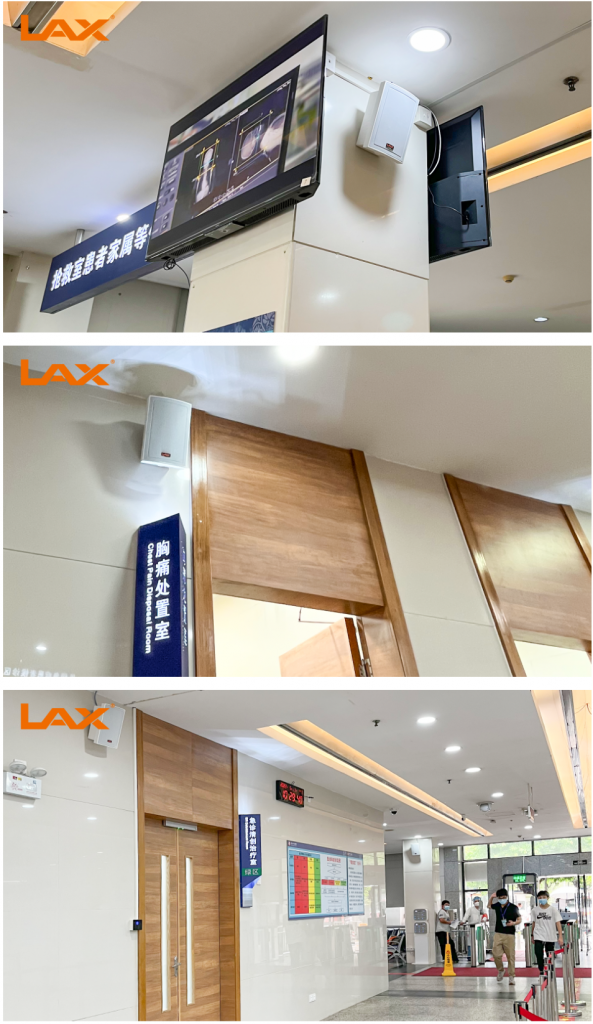 根據急診科的需要,LAX為其配置了60臺CL-9032室內IP揚聲器。每一個揚聲器即為一個網絡IP終端,通過IP控制實現每只揚聲器全功能控制,實現每個診室按需獨立廣播或者區間編組分區廣播。IP化系統極大地方便了系統的安裝布線和用戶使用擴展的便利性。揚聲器專業一體化壁掛式設計,弧形發射面設計,聲音清晰洪亮,覆蓋角度廣。無論站在急診室哪個位置,都能清晰地聽到廣播內容,讓信息傳達更方便有效。