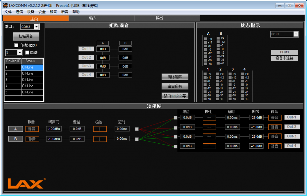 搭配該模塊的PC端控制軟件-LAX CON,遠程調控音箱系統參數,使用時更加靈活方便。LAX CON支持靜音、增益、EQ/高低通、限幅、延遲、溫度設定、橋接、補償等參數處理。