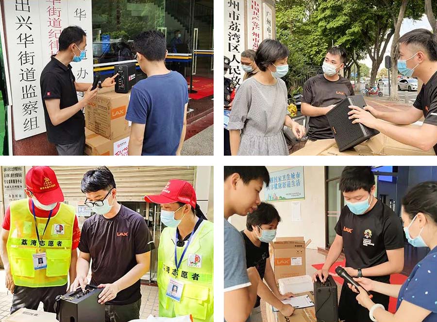 今年自5月末起,廣州市荔灣區(qū)一例新冠確診信息打破了這座城市的寧靜。在此全民抗疫的時刻, 銳豐LAX積極并快速做出響應(yīng), 把社會責(zé)任放在第一位, 為前線貢獻綿薄之力。先后奔赴廣州荔灣區(qū)、番禺區(qū)、天河區(qū)、南沙區(qū)、增城區(qū)、海珠區(qū)越秀區(qū)捐予便攜式音箱。應(yīng)用于廣州市各區(qū)1200個防疫點作宣傳防疫知識,普及廣大市民。