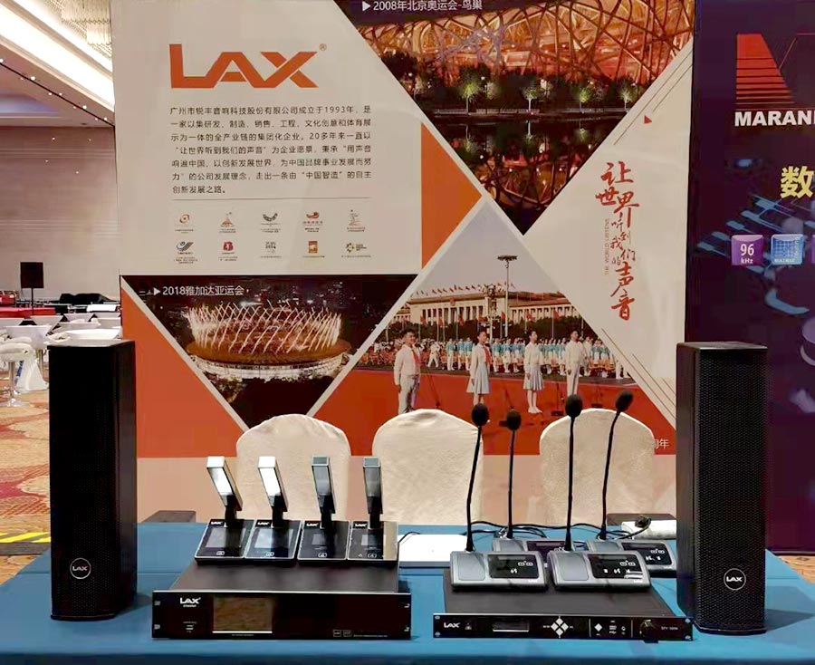 本次巡展銳豐科技主要展出LAX DTY全網絡環狀數字DSP有線會議系統、ETA高端數字有線全功能會議系統及建黨100周年特制U04揚聲器。