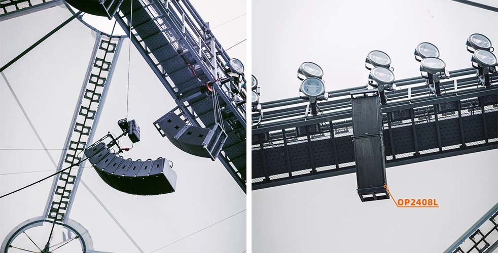 在東西觀眾區,為了更好地平衡聲場,每個區域共吊裝了4只LAX PS12 3D束波可旋轉號角揚聲器,同樣每1只為1組,共計4組。南北觀眾區,一共吊裝了16只揚聲器,每2只揚聲器為1組,共計8組,從而形成一種和諧的音場效果。