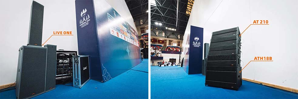 在比賽場地區域,我們配備了8組LAX雙12寸3D束波全頻揚聲器,每組揚聲器能夠均勻覆蓋整個比賽場地,保證了所有的運動員及場上人員都能夠清晰地聽到場上的聲音。